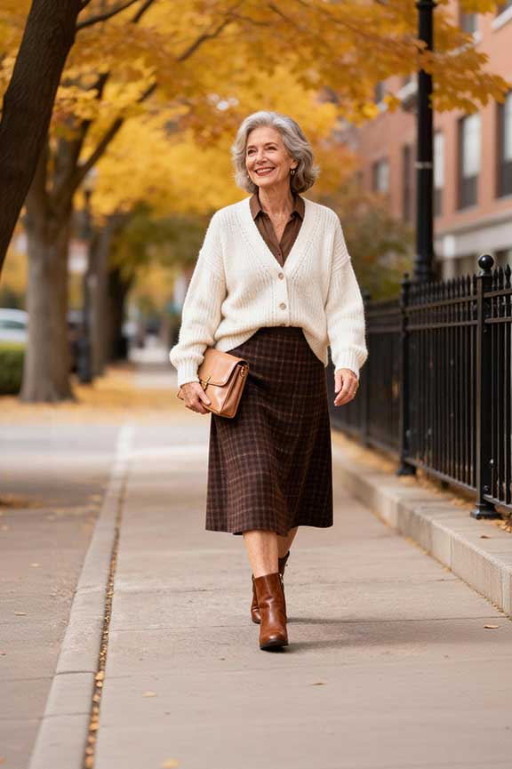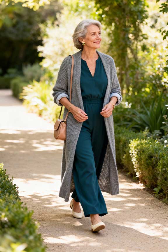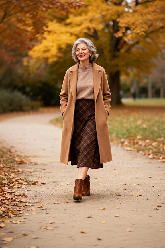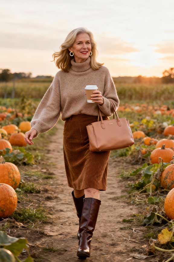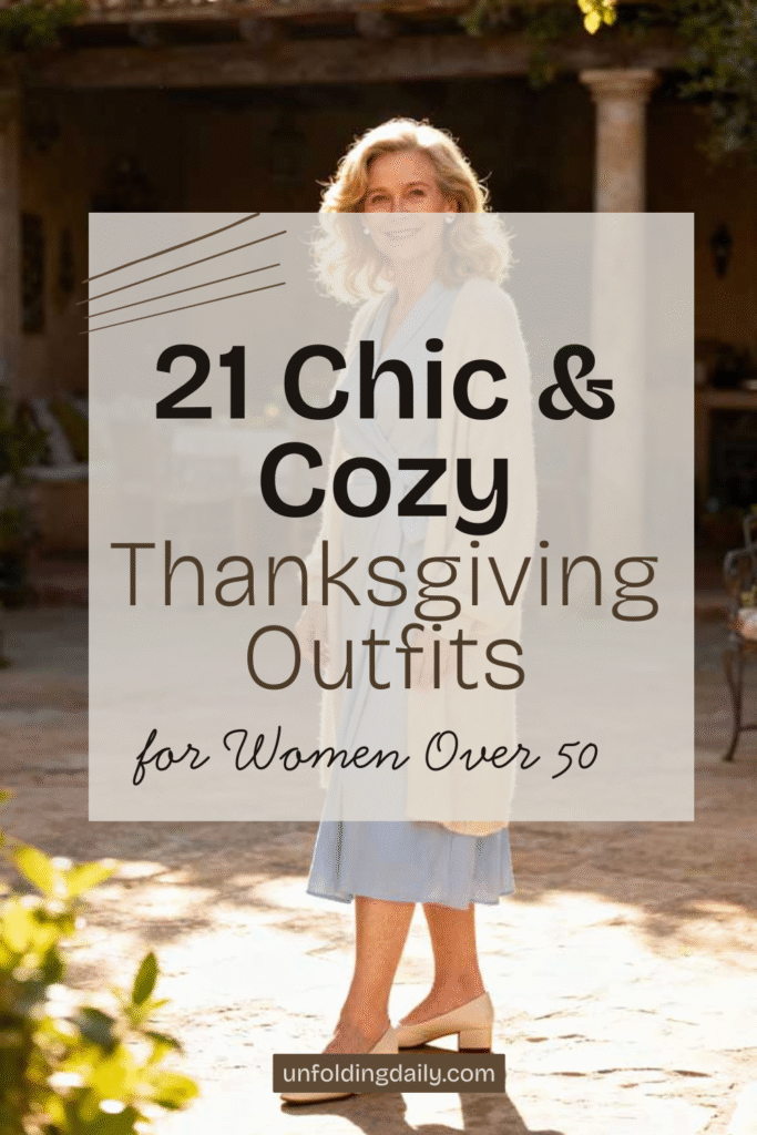 Whether for family dinners, Friendsgiving, or outdoor activities, these ensembles let women over 50 enjoy the holiday with elegance, warmth, and effortless style. The key is combining comfort, elegance, and a relaxed yet refined look.