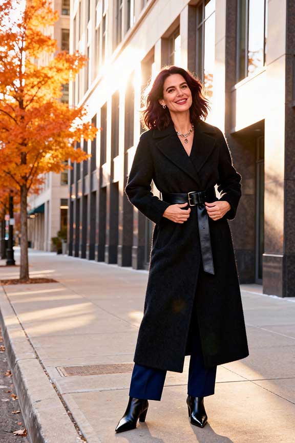 A long black coat is one of the most reliable pieces you can own. By changing textures, silhouettes, and layers underneath, you can create countless outfits without overthinking. Focus on balance and proportion, and this classic coat will carry you through season after season in effortless style.