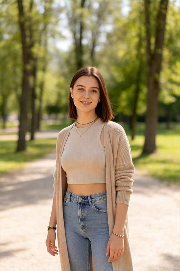 A cropped top subtly lifts the waist, which helps counterbalance the length of the cardigan. High-waist jeans reinforce that proportion, keeping the outfit from feeling heavy. This combination feels relaxed but confident—comfortable, but not oversized in the wrong places. You’ll wear this again for travel days or off-duty weekends—it’s comfortable without looking sloppy.