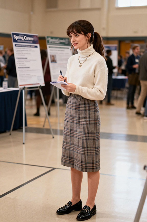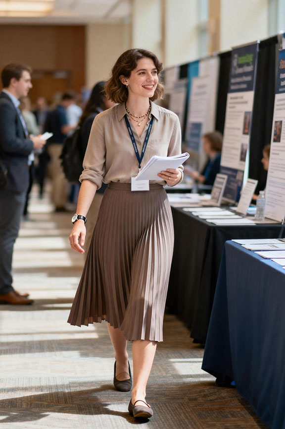 You’re standing longer than expected, talking to strangers, holding resumes, and moving through crowded rooms—all while trying to stay calm and composed. These outfits focus on ease, balance, and quiet structure, so what you wear supports you instead of stealing your attention.