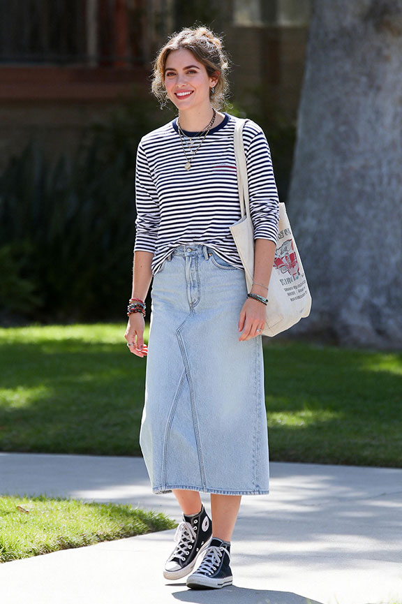 Long Denim Skirt Outfit Ideas for Spring