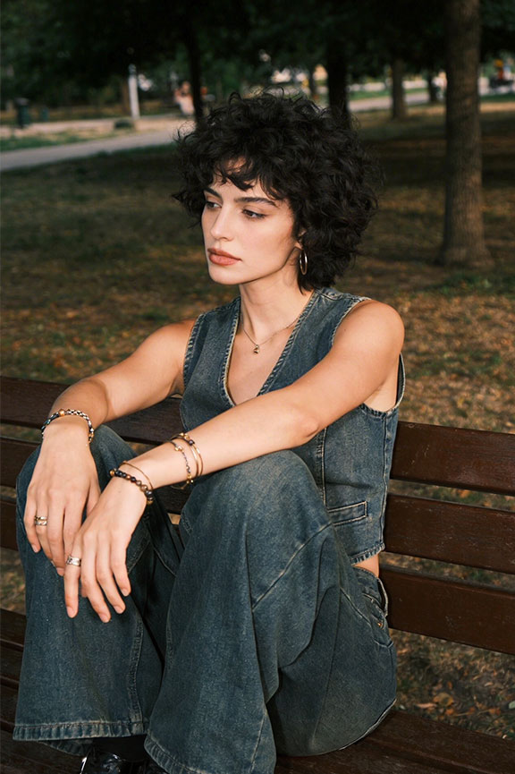 Crochet adds texture and seasonal detail to the summer denim look. Choose a fitted shape to keep proportions sharp and defined. Light and expressive.