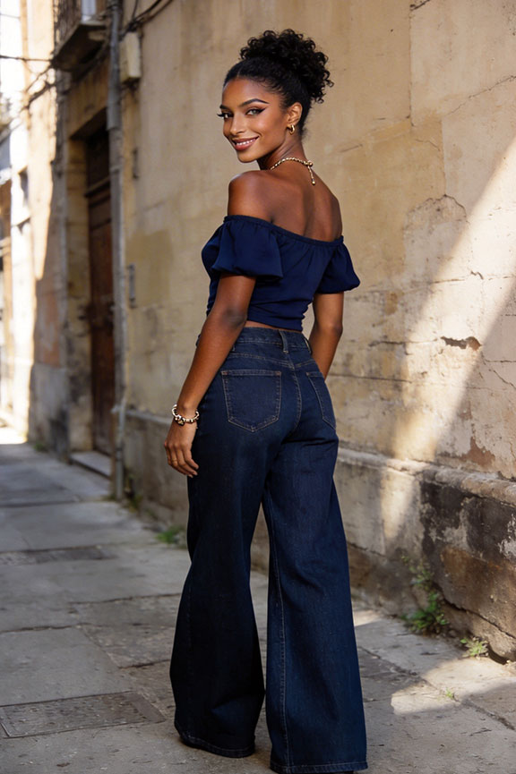 Wide leg jeans are naturally statement-making, so the styling doesn’t need to be complicated. Focus on defining the waist, keeping fabrics lightweight, and choosing shoes that complement the length of the denim.